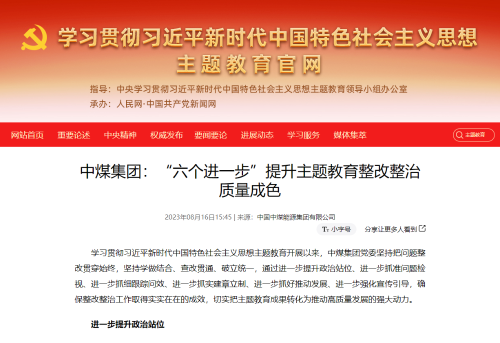 【中央主題教育官網(wǎng)】中煤集團:“六個進一步”提升...